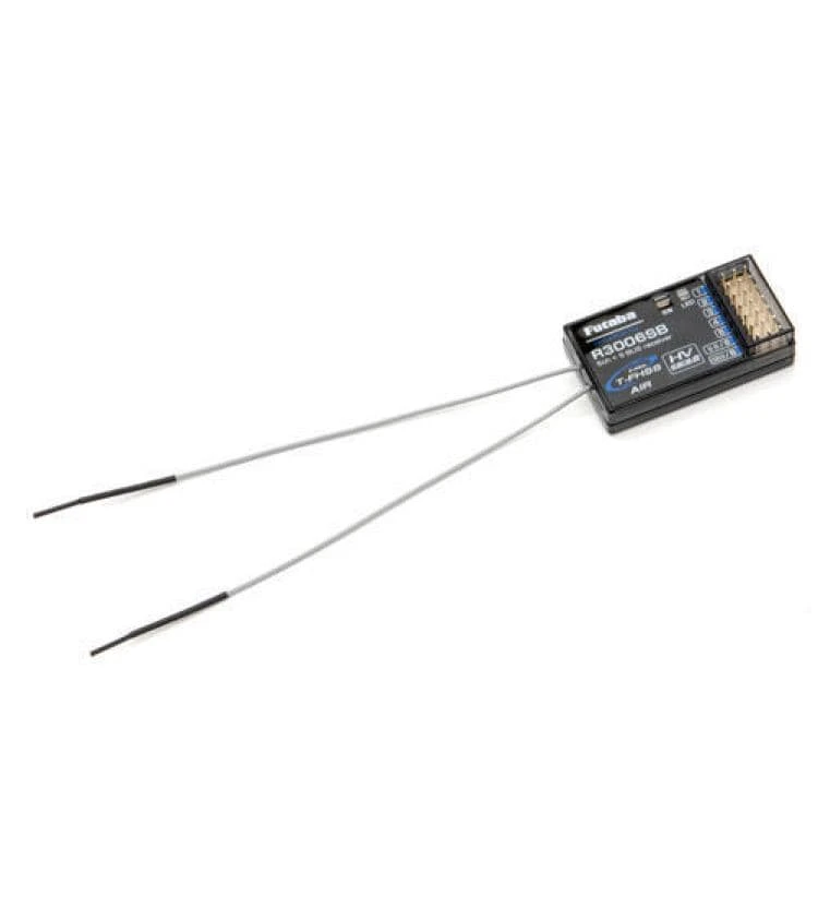Der 6-Kanal-Empfänger R3006SB von Futaba ist trotz seines geringen Gewichts von nur 8,5 g ein wahres Multitalent. Dank seines integrierten Telemetriesenders kann er bis zu 32 Telemetriedatensätze mit einer Reichweite von bis zu 1000 m zu Boden funken. Er arbeitet mit telemetriefähigen T-FHSS-Sendern zusammen, ist jedoch nicht kompatibel mit FASST-, FASSTest- oder S-FHSS-Sendern.