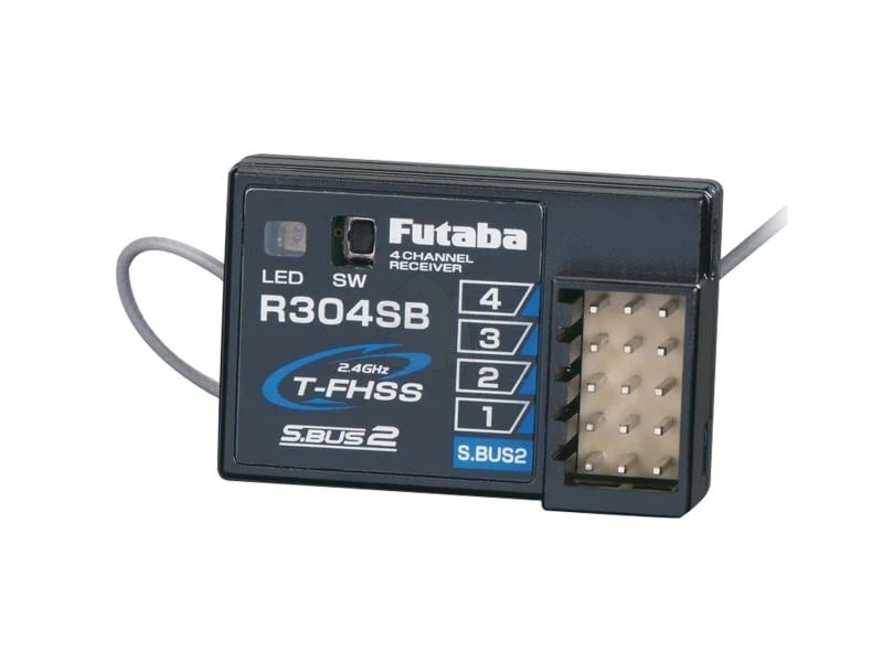 Der Futaba R304SB ist ein T-FHSS-Empfänger mit vier Kanälen für normale Servos und Regler. Am zusätzlichen S.BUS2-Ausgang schliessen Sie entsprechende Geräte, wie Servos und Telemetrie-Sensoren an. Der empfängerinterne Telemetriesender überträgt die Daten zum RC-System, wo diese im Display angezeigt werden können.
