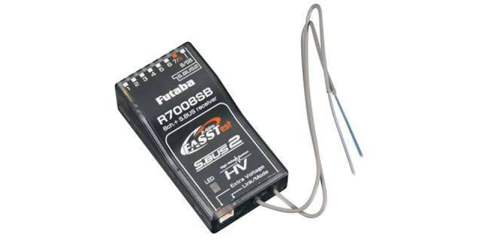 Der R7008SB ist ein 2,4GHz FASSTest S.BUS-Empfänger mit voller Reichweite und integriertem Telemetriesender. Er ist einsetzbar vom Mini-Heli bis zum Grossflugmodell. Die Ausgänge der 8 PWM-Servokanäle sind den Ausgängen Port 1 und 2 zuteilbar, wodurch Ausgangsbelegung weitgehend frei gewählt werden kann.