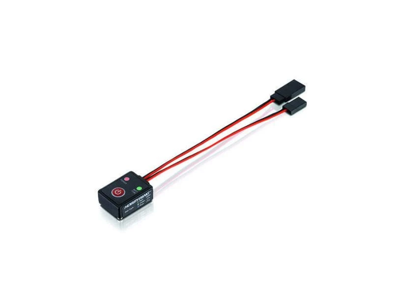 Der elektronische Schalter von Hobbywing ist mit einem vibrationsbeständigem On/Off-Knopf ausgestattet, welcher vibrations- und rostbeständig sowie wasserfest ist. Zudem verfügt der Schalter über mehrere Schutzfunktionen und ein LED-Licht, welches als Anzeige dient.