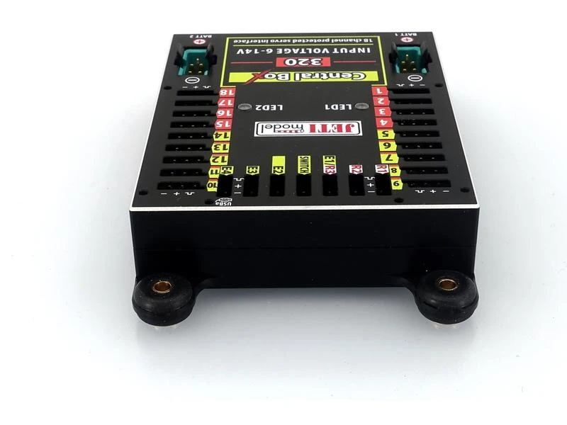 - Anschlüsse für bis zu 18 Servos (HV-fähig) mit überlast Schutz und DITEX Telemetrie support