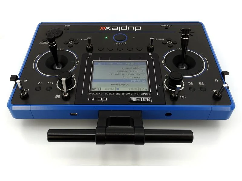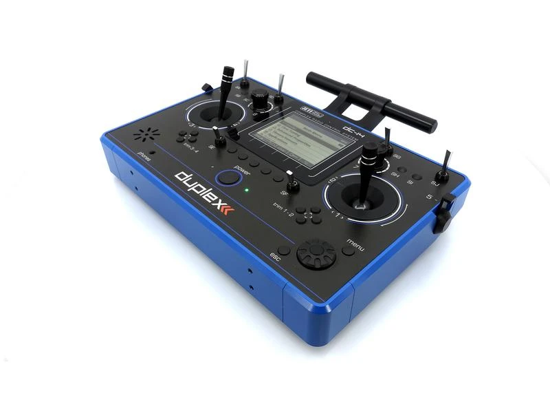 Der Pultsender DC-14 II setzt auf das bewährte Jeti-Duplex 2.4 GHz System. Er verfügt über präzise Steuerknüppel mit Hallsensoren, ein LCD-Farbdisplay mit Hintergrundbeleuchtung und ein klares, intuitives Programmiermenü. Der DC-14 II bietet ein modulares System von Softwarefunktionen, die den Anforderungen des Benutzers entsprechend angepasst werden kann.