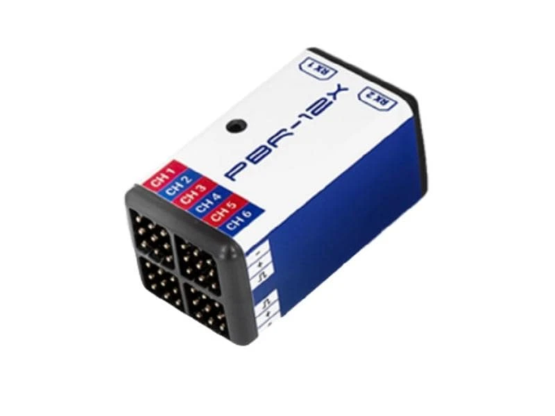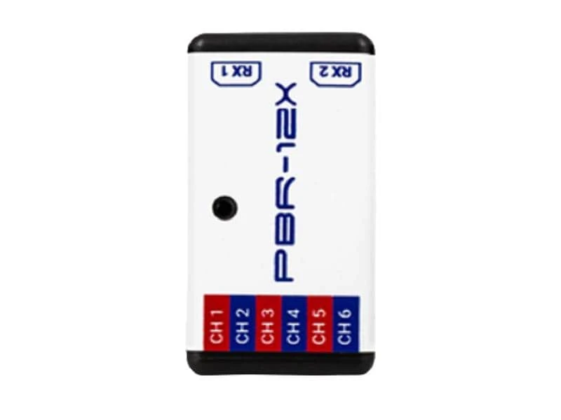 Als Empfangsteil kommen alle Empfänger zur Auswahl, die einen Busausgang haben. Das angeschlossene Bussystem wird automatisch erkannt, sodass ausser den Failsafe-Positionen keine Einstellarbeiten notwendig sind. Um ein redundantes Empfangssystem aufzubauen, können zwei Empfänger angeschlossen werden. Der PBR-12X ersetzt mögliche verlorene Datenpakete des ersten Empfängers ohne Verluste mit den Daten des zweiten.