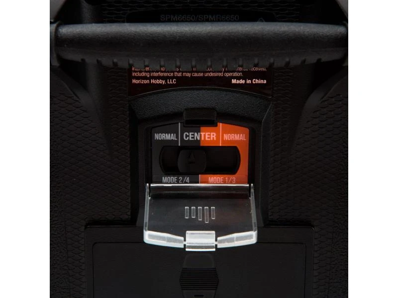 Wenn Sie vom Flugzeug auf den Heli oder zum Multikopter wechseln, kommen Sie bei vielen Sendern nicht um einen Umbau der Steuerknüppel auf einen anderen Modus herum. Beim DX6e benötigen Sie dafür kein Werkzeug, denn dank speziell konstruierter Steuerelemente können Sie die Umschaltung zwischen Mode 1, Mode 2, Mode 3 und Mode 4 bequem mit einem Schalter auf der Rückseite vornehmen.